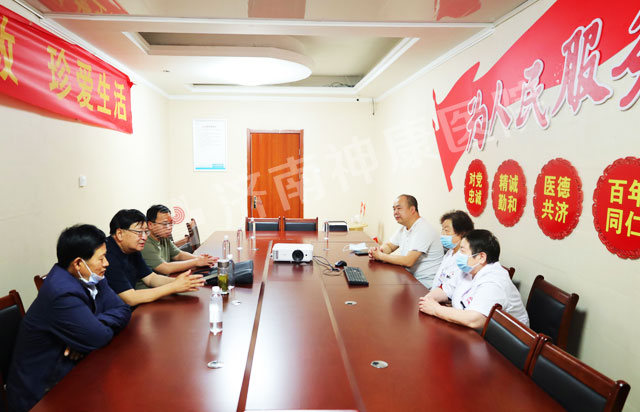 5月28日上午,济阳区残疾人联合会张明源理事长一行数人实地调研视察我院精神残疾康复工作情况。调研组一行参观了门诊部、住院部、治疗中心、康复中心等,院领导对医院康复设施基础建设、康复训练开展情况进行详细介绍,调研组对住院部、康复中心功能设置、运营管理经验等重要问题予以详细询问,并亲切慰问了部分住院精神残疾人。