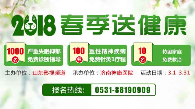 春季是精神疾病高发期,正确认识、治疗精神疾病势在必行?日前,为了全面推进我国精神卫生工作的发展,引起民众对精神卫生问题的广泛关注,切实解决广大精神疾病患者“看病难、看病贵”等问题。济南神康医院继“春节送健康”活动之后又将开展“春季送健康“精神疾病患者公益援助行动。希望通过本次公益活动引起社会上对精神疾病的关注,使广大群众及时得到专家的指导和健康状况评估,让更多的精神疾病患者得到有效的治疗。